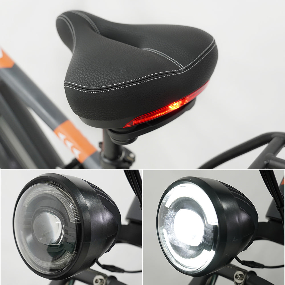 VAKOLE CO26, the eMTB , we use a new seat with a light (uses small batteries, no cables ). There is a switch to turn on/off it.